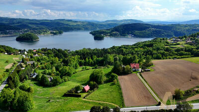 Widokowa działka rolno-budowlana, częściowo zalesiona Gródek nad Dunajcem 2,70 ha z widokiem z trzech stron na jezioro. ...